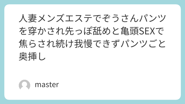 未分類 人妻メンズエステでぞうさんパンツを穿かされ先っぽ舐めと亀頭SEXで焦らされ続け我慢できずパンツごと奥挿し 人妻メンズエステでぞうさんパンツを穿かされ先っぽ舐めと亀頭SEXで焦らされ続け我慢できずパンツごと奥挿し300円 2026.01.04 未分類